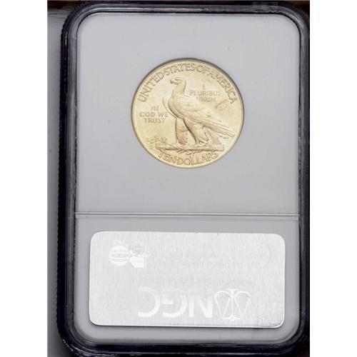 <B>1909-D<$10> AU58 NGC.</B></I> Straw-gold color with nearly full luster, slight highpoint wear, a few wispy hairlines on Liberty's cheek, and scattered small contact marks. A faint red-orange alloy streak is noted in the right reverse field area.