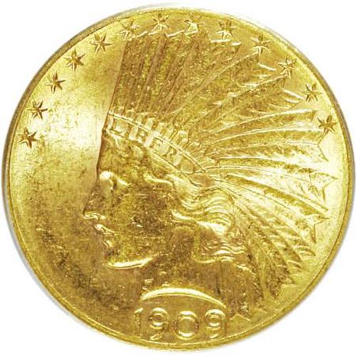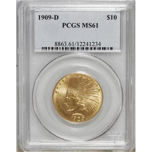 <B>1909-D $10 MS61 PCGS.</B></I> . PCGS Population (139/291). NGC Census: (145/188). Mintage: 121,540. Numismedia Wsl. Price for NGC/PCGS coin in MS61: $925. (#8863)<BR><BR><B>Coin Engraver:</B> Augustus Saint-Gaudens<BR><BR><b>Shipping:</b> Coins & Currency (<a target="_blank" href="http://www.heritageauctions.com/common/shipping.php">view shipping information</a>)