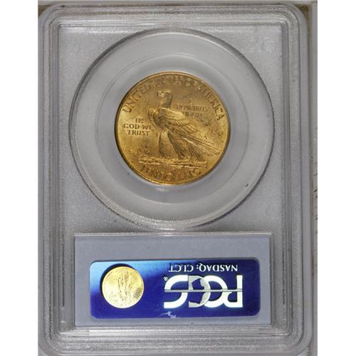<B>1909-D<$10> MS62 PCGS.</B></I> A generally well struck example, antique-gold with dark green accents, from the early years of the Denver Mint. Softly lustrous with moderate abrasions in the fields.
