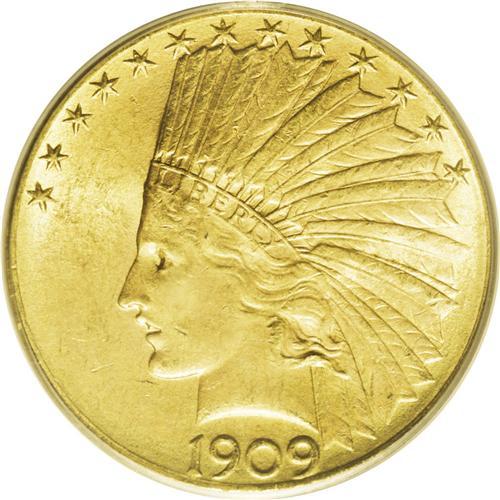 <B>1909-D $10 MS63 PCGS.</B></I> The 1909-D is an overlooked Indian eagle that is scarce to rare in all states of Uncirculated. This is an atypical example that displays warm reddish patina and soft mint frost, rather than the usually encountered subdued finish. Lightly marked overall with one noticeable abrasion in the center of the obverse and a handful of small marks on the reverse.<BR><I>From The Dr. Eugene Cherny Collection of $5 and $10 Indians.</B></I><BR><BR><b>Shipping:</b> Coin/Currency (<a target="_blank" href="http://www.heritageauctions.com/common/shipping.php">view shipping information</a>)