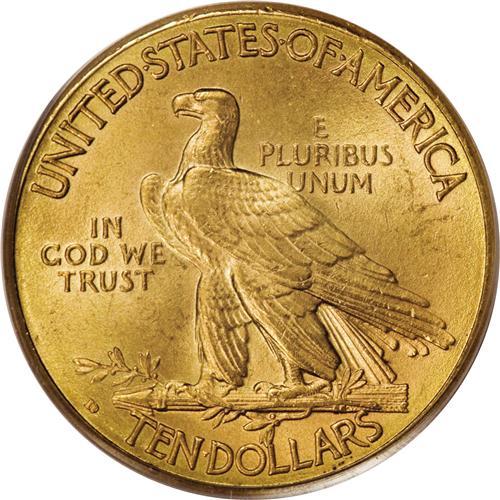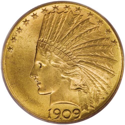 <B>1909-D $10 MS64 PCGS.</B></I> With a scant mintage of 121,540 pieces, the 1909-D is one of many rarities in the Indian Head eagle series. It is considerably scarcer than the mintage would indicate, and especially so in the better grades of Uncirculated. In their <I>Encyclopedia of U.S. Gold Coins,</B></I> Jeff Garrett and Ron Guth recognize the 1909-D ten dollar gold piece as a coin that is difficult to locate in Gem grades. They go on to state that the strike on this date are average at best and the luster is often less spectacular than typically found on previous issues. These observations provide a logical explanation regarding this coin's low population numbers. As of (3/07), PCGS has certified 30 coins at the MS64 level, with only 10 finer. This particular piece has the noticeably granular surfaces that are invariably seen on 1909-D tens. It also displays rich reddish-gold color with subtle accents of lilac interspersed on each side. Sharply defined throughout.<BR><BR><b>Shipping:</b> Coins & Currency (<a target="_blank" href="http://www.heritageauctions.com/common/shipping.php">view shipping information</a>)
