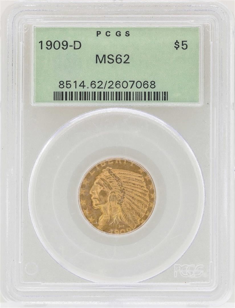 One 1909-D $2 1/2 Indian Head Quarter Eagle Gold Coin PCGS MS62. PCGS Graded.
