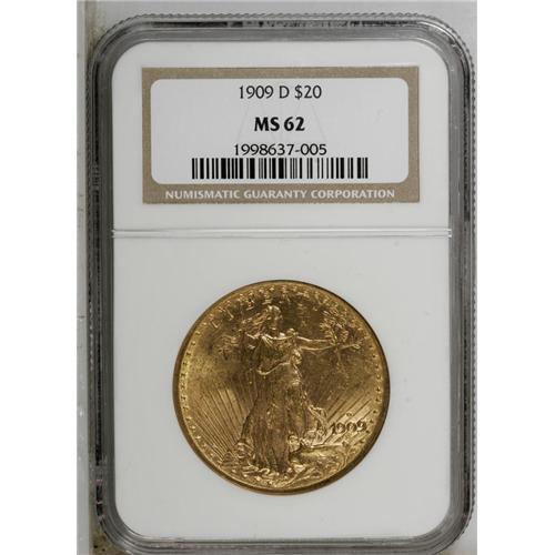 1909-D $20 MS62 NGC. With a mintage of only 52,000, co