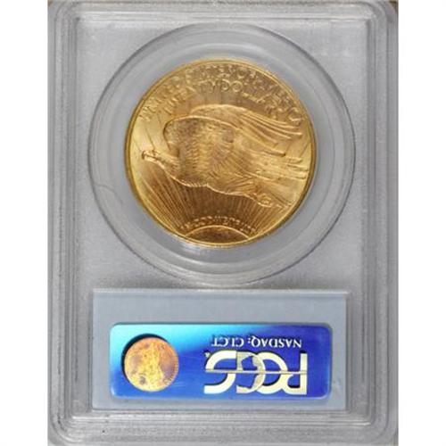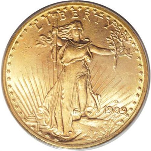 <B>1909-D $20 MS64 PCGS.</B></I> Large D Over Small D. Even though 20-30 Uncirculated coins have entered the market over the past 30 years, the semi-key status of the 1909-D has not changed. While these few examples have become available from foreign sources, it is apparent that most of the 52,500 pieces minted were retained in this country and either circulated or were later melted in the 1930s. This is a superior coin that shows rich, original orange-gold and lilac coloration interspersed over each side with soft mint frost that enlivens the original patination. Sharply struck. The mintmark appears to be the much scarcer Large D Over Small D that was discovered and first publicized in the Norweb III Sale. There is a small portion of the small mintmark present still at the upper left. The inner right curve also appears to be present; otherwise, the mintmark is wide. An interesting variant that few collectors are aware of.<BR><BR><B>Coin Engraver:</B> Augustus Saint-Gaudens<BR><BR><b>Shipping:</b> Coins & Currency (<a target="_blank" href="http://www.heritageauctions.com/common/shipping.php">view shipping information</a>\)