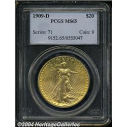 <table><tbody><tr><td><table> <TR><TD width="100%"><TABLE cellSpacing=1 cellPadding=3 width="100%" border=0><TBODY><TR><TD width="100%" bgColor=#79735c><FONT face=arial color=#ffffff size=3><B>Description</B> </FONT></TD></TR><TR><TD width="100%" bgColor=#ffffff><FONT face=arial size=2><B>1909-D $20 MS65 PCGS.</B></I> In its second year of production for the Saint-Gaudens Double Eagle, the Denver Mint produced only 52,500 coins. This date was once regarded as a major rarity in Mint State, but the emergence of a Central American hoard in 1983 has made the '09-D generally available in grades up to and including the MS63 level. In Choice, Gem, and finer grades, however, this issue remains elusive. Softly frosted with pleasing cartwheel effects, the surfaces are tinged in reddish-gold hues. Both sides are well produced with sharp definition and freedom from all but a few small abrasions. Population: 6 in 65, 3 finer (10/03).<BR><I>From a Magnificent Collection of Double Eagles.</B></I> </FONT></TD></TR></TBODY></TABLE></TD></TR></TBODY></TABLE><BR><A name=PricesRealized></A><TABLE cellSpacing=0 cellPadding=0 width="100%" bgColor=#000000 border=0><TBODY><TR><TD width="100%"><TABLE cellSpacing=1 cellPadding=3 width="100%" border=0><TBODY><TR><TD width="100%" bgColor=#79735c><A name=PR><FONT face=arial color=#ffffff size=3><B>Previous Prices from Heritage Auctions</B> </FONT></A></TD></TR><TR><TD bgColor=#f6f6ed><TABLE cellSpacing=0 cellPadding=0 width="100%" border=1><TBODY><TR><TD align=middle width="33%"><B>Date</B></TD><TD align=middle width="33%"><B>Service</B></TD><TD align=middle width="33%"><B>Price</B></TD></TR><TR bgColor=whitesmoke><TD width="33%"><B>04/27/2002</B></TD><TD width="33%">PCGS</TD><TD width="33%">$18,975.00</TD></TR></TBODY></TABLE></TD></TR><TR><TD bgColor=#ffffff><FONT face=arial size=1 ?>PLEASE NOTE: All prices realized reflect the final hammer price PLUS the buyer's premium in auctions that charge a buyer's premium. Each item has a notation at the top of the listing indicating whether that lot included a buyer's premium. Example: A item that sells with a final hammer price of $100 and a 20% buyer's premium will display with a price realized of $120. All information listed is intended to be as accurate as possible, but errors are possible. Please use this guide carefully and inform us of any inaccuracies. </FONT></TD></TR></TBODY></TABLE></TD></TR></TBODY></TABLE><BR><TABLE cellSpacing=0 cellPadding=0 width="100%" bgColor=#000000 border=0><TBODY><TR><TD width="100%"><TABLE cellSpacing=1 cellPadding=3 width="100%" border=0><TBODY><TR><TD width="100%" bgColor=#79735c colSpan=6><FONT face=arial color=#ffffff size=3><B>Price Guide*</B> </FONT></TD></TR><TR bgColor=#f6f6ed><TD align=middle><B>Grade</B> </TD><TD align=middle><B>Coin World<BR>(Trends)</B> </TD><TD align=middle><B>Numismedia<BR>Retail</B> </TD><TD align=middle><B>Numismedia<BR>Wholesale</B> </TD><TD align=middle><B>Coin<BR>Universe</B> </TD><TD align=middle><B>Heritage<BR>Value Index</B> </TD></TR><TR bgColor=#ffffff><TD align=middle>64</TD><TD align=right>$13,000.00</TD><TD align=right>---</TD><TD align=right>$7,125.00</TD><TD align=right>$7,100.00</TD><TD align=right>$7,210.00</TD></TR><TR style="FONT-WEIGHT: bold" bgColor=#cccfdd><TD align=middle>65</TD><TD align=right>$40,000.00</TD><TD align=right>---</TD><TD align=right>$31,750.00</TD><TD align=right>$42,500.00</TD><TD align=right>$27,252.50</TD></TR><TR bgColor=#ffffff><TD align=middle>66</TD><TD align=right>$50,000.00</TD><TD align=right>---</TD><TD align=right>---</TD><TD align=right>---</TD><TD align=right>$35,000.00</TD></TR><TR bgColor=#ffffff><TD colSpan=6><FONT size=1>*All information listed is intended to be as accurate as possible, but errors are possible. No item may be returned or refused based on this information which is provided as a service to our customers. You should contact each pricing source directly to determine the accuracy of this information. </FONT></TD></TR></TBODY></TABLE></TD></TR></TBODY></TABLE><BR><TABLE cellSpacing=0 cellPadding=0 width="100%" bgColor=#000000 border=0><TBODY><TR><TD width="100%"><TABLE cellSpacing=1 cellPadding=3 width="100%" border=0><TBODY><TR><TD width="100%" bgColor=#79735c><FONT face=arial color=#ffffff size=3><B>Population Guide</B> </FONT></TD></TR><TR bgColor=#ffffff><TD align=middle><!-- Begin Output of Population Grid--><TABLE cellSpacing=0 cellPadding=0 width="100%" border=0><TBODY><TR><TD vAlign=center><TABLE cellSpacing=0 width="100%" border=1 cellsadding="3"><TBODY><TR><TD vAlign=center><TABLE cellSpacing=0 cellPadding=3 width="100%" border=1><TBODY><TR><TD vAlign=center align=middle bgColor=#f0f1e8 colSpan=2 <CENTER><FONT face=Arial size=2><B>PCGS Pop </B></FONT><CENTER></CENTER></TD><TD vAlign=center align=middle bgColor=#f0f1e8 colSpan=2><CENTER><FONT face=Arial size=2><B>NGC Pop</B></CENTER></FONT></TD></TR><TR><TD vAlign=center><FONT face=Arial size=2>(65)</FONT> </TD><TD vAlign=center align=right><FONT face=Arial size=2>6</FONT> </TD><TD vAlign=center><FONT face=Arial size=2>(65)</FONT> </TD><TD vAlign=center align=right><FONT face=Arial size=2>3</FONT> </TD></TR><TR><TD vAlign=center><FONT face=Arial size=2>(>65)</FONT> </TD><TD vAlign=center align=right><FONT face=Arial size=2>3</FONT> </TD><TD vAlign=center><FONT face=Arial size=2>(>65)</FONT> </TD><TD vAlign=center align=right><FONT face=Arial size=2>0</FONT> </TD></TR></TBODY></TABLE></TD></TR></TBODY></TABLE></TD></TR></TBODY></TABLE><!-- End Output of Population Grid--></TD></TR></TBODY></TABLE></TD></TR></TBODY></TABLE><BR><TABLE cellSpacing=0 cellPadding=0 width="100%" bgColor=#000000 border=0><TBODY><TR> <font color='#000000'><span style='background-color: #FFFFFF'><td bgcolor='#FFFFFE'> Important notice: Heritage usually auctions material at the rate of 200-250 lots per hour. On some occasions eBay Live bid software or the Internet may not be able to keep up with the pace of the auction. We recommend placing a realistic abs