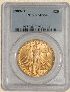 4338-24 1909-D $20 St. Gaudens MS64 PCGS