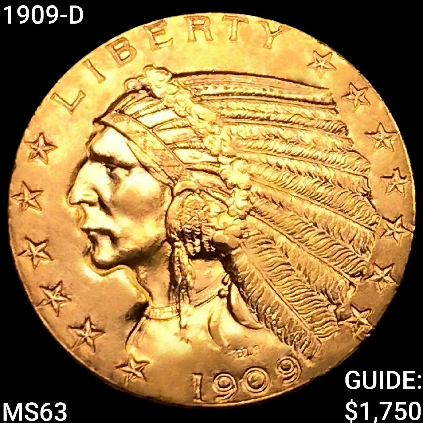 1909-D $5 Gold Half Eagle CHOICE BU