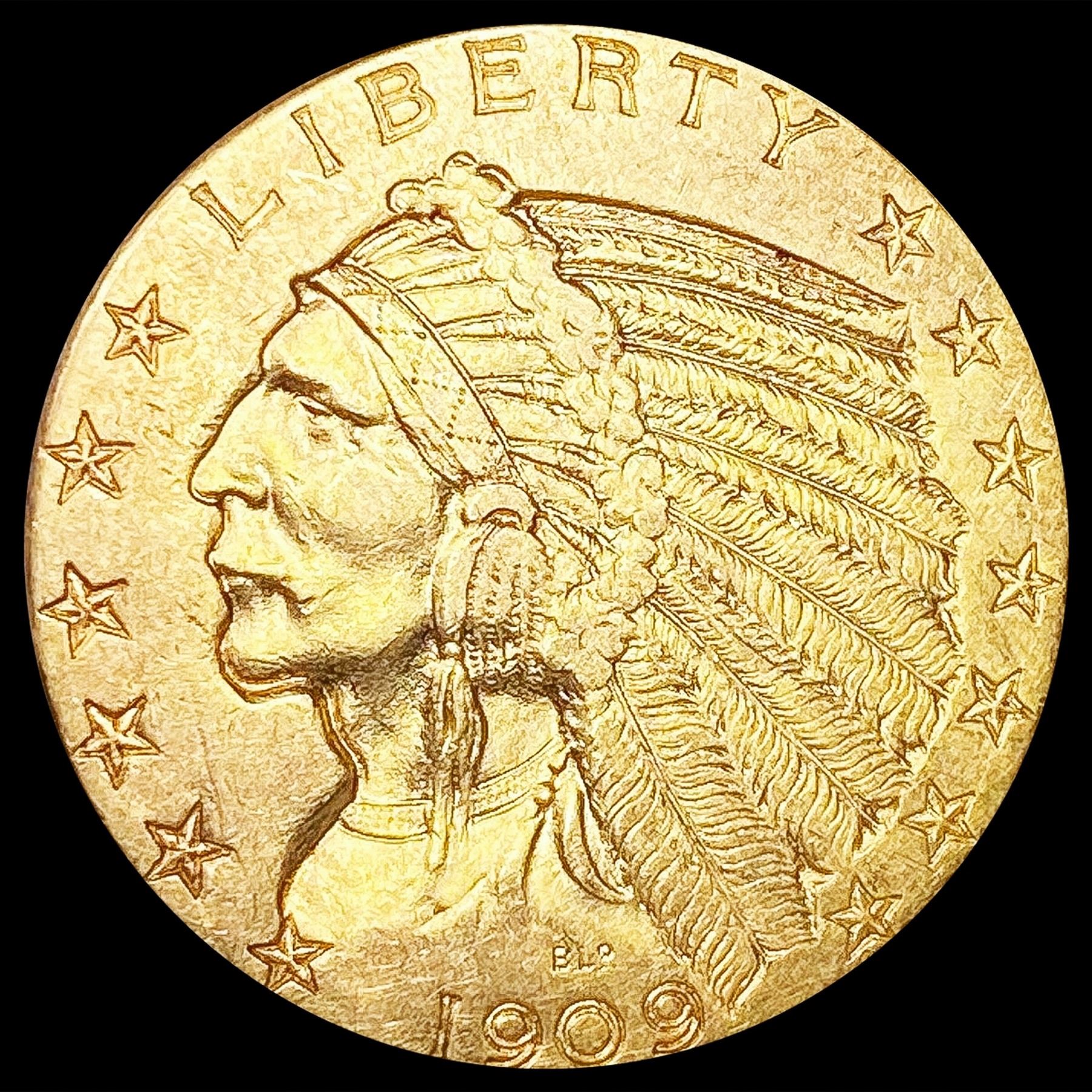 1909-D $5 Gold Half Eagle CLOSELY UNCIRCULATED