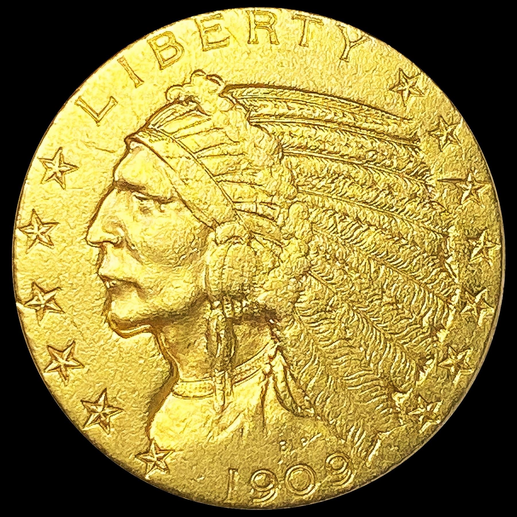 1909-D $5 Gold Half Eagle CLOSELY UNCIRCULATED