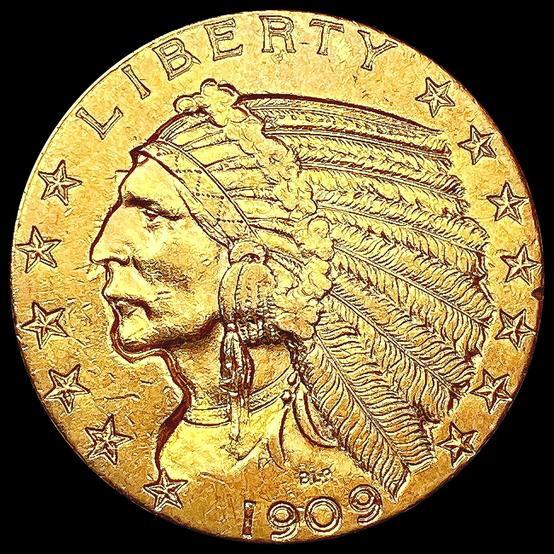 1909-D $5 Gold Half Eagle CLOSELY UNCIRCULATED