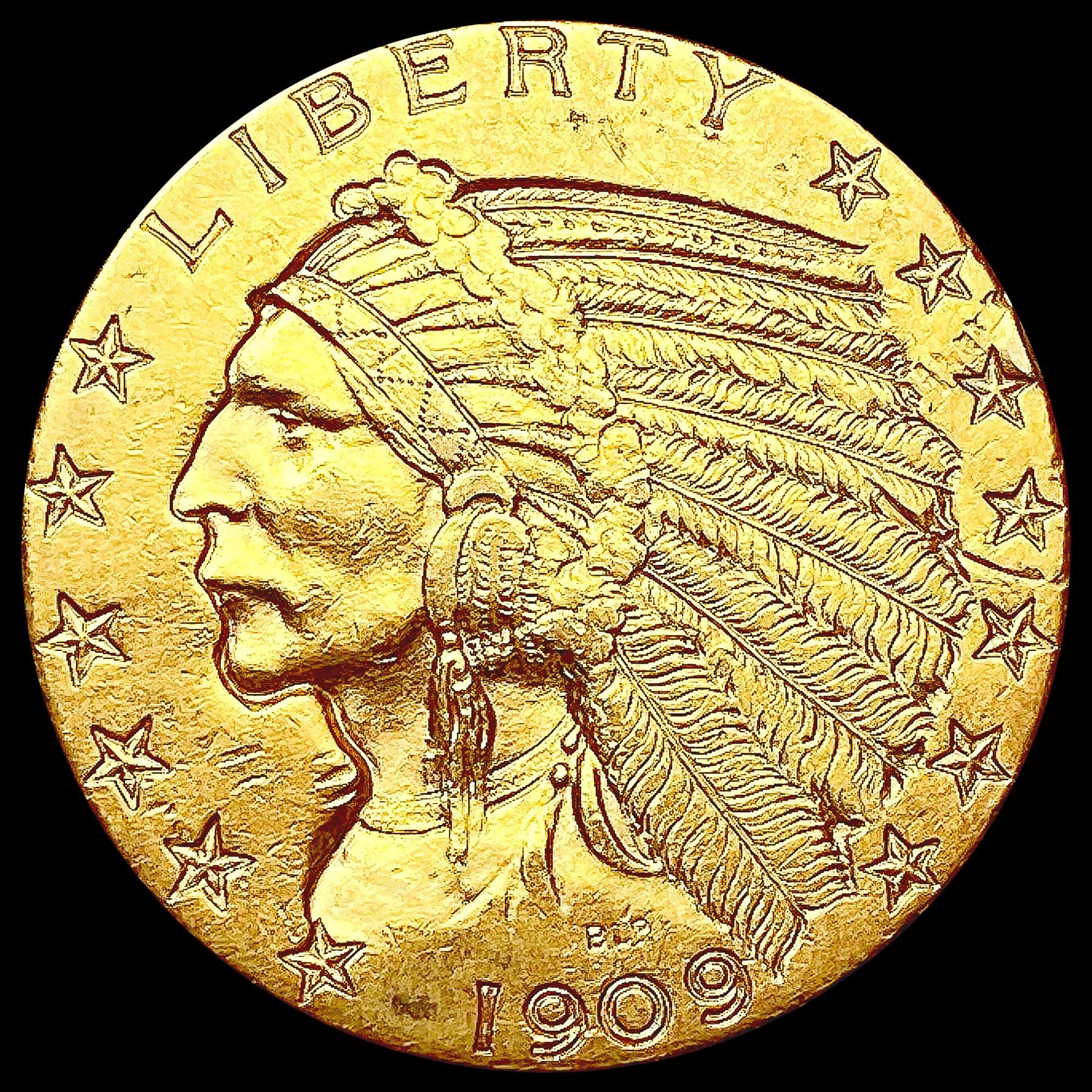 1909-D $5 Gold Half Eagle CLOSELY UNCIRCULATED