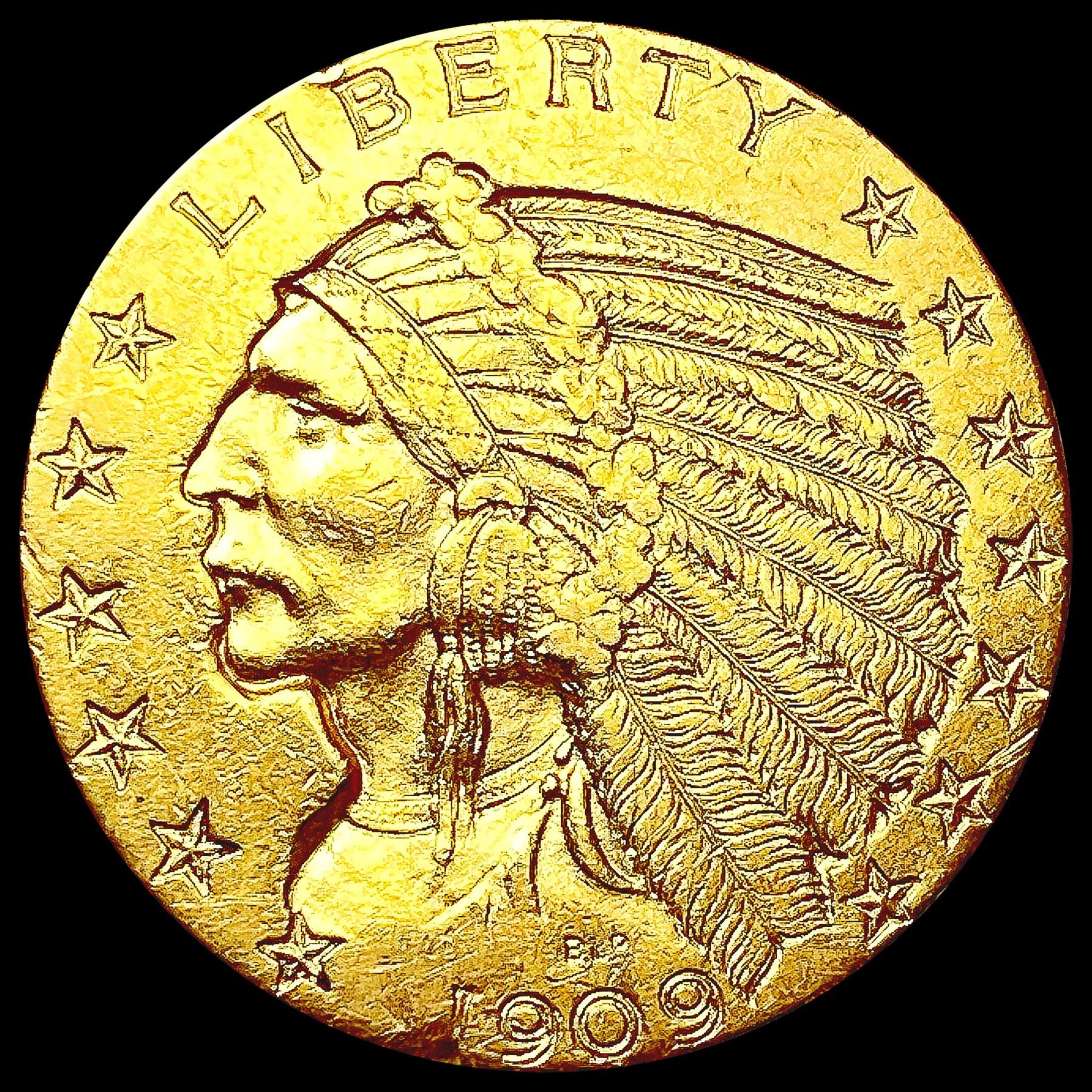 1909-D $5 Gold Half Eagle CLOSELY UNCIRCULATED