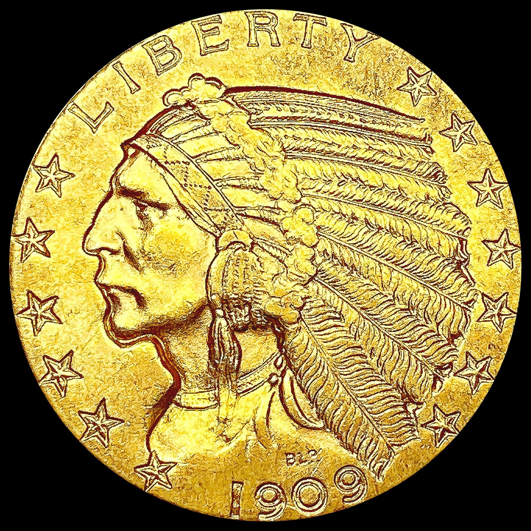 1909-D $5 Gold Half Eagle CLOSELY UNCIRCULATED