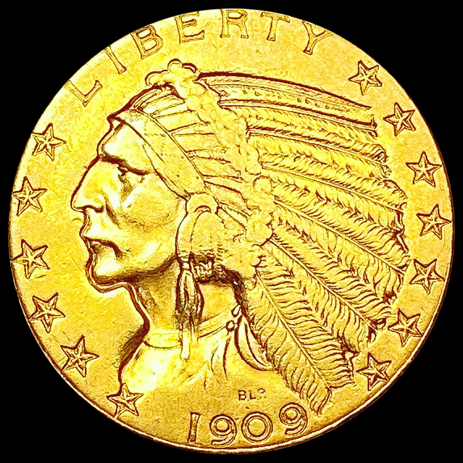 1909-D $5 Gold Half Eagle CLOSELY UNCIRCULATED