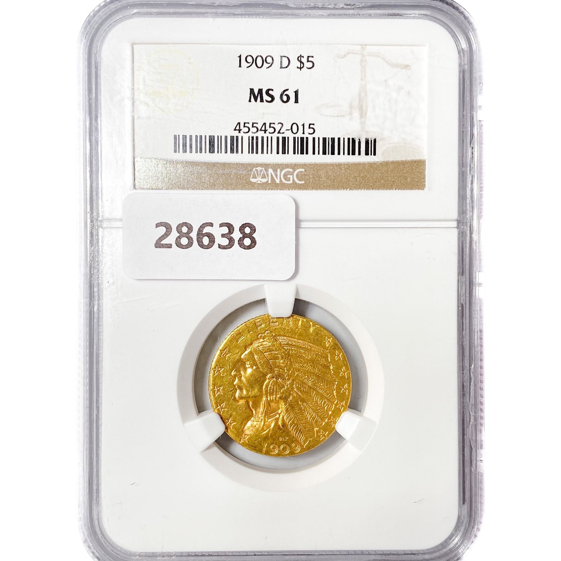 1909-D $5 Gold Half Eagle NGC MS61