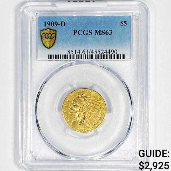 1909-D $5 Gold Half Eagle PCGS-MS63