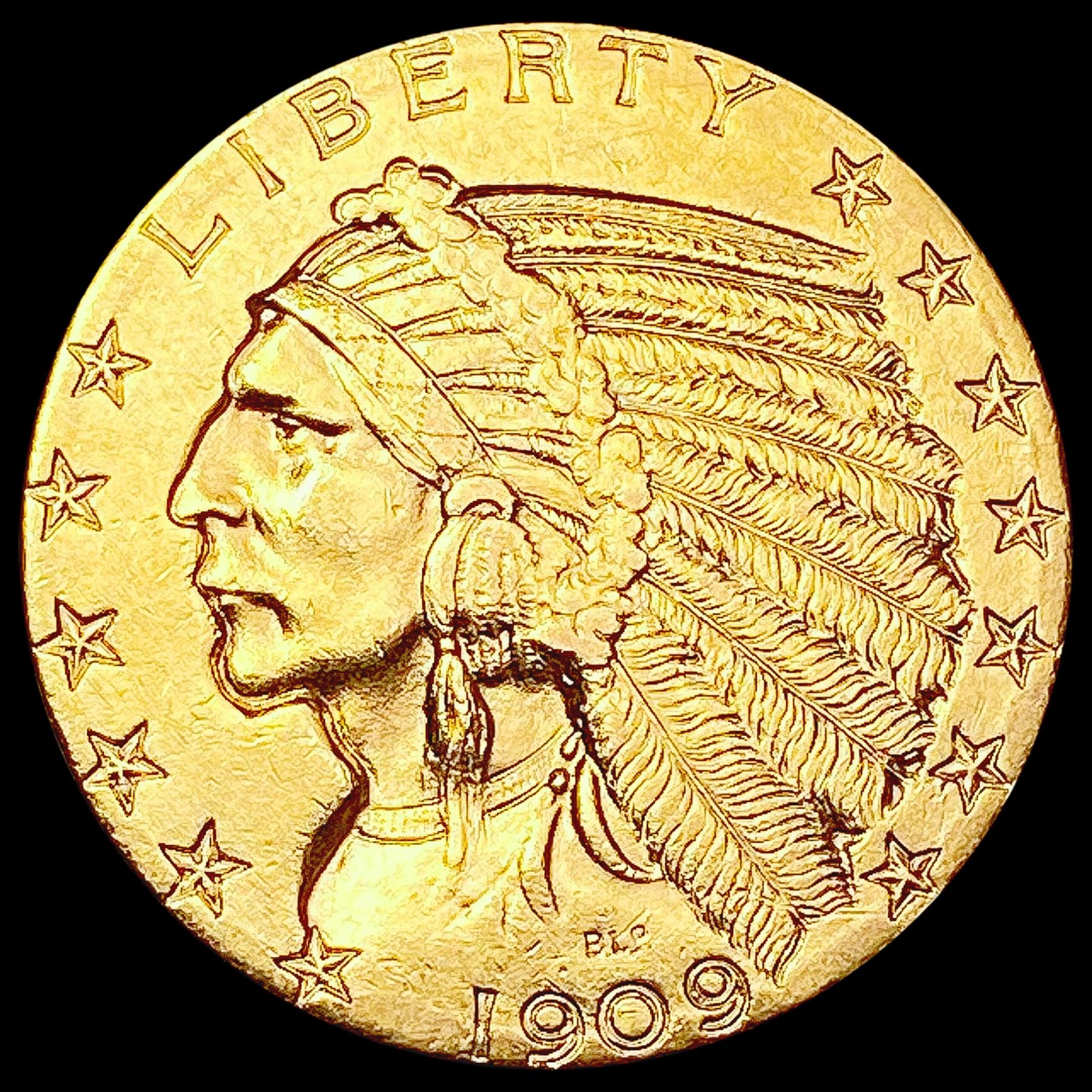 1909 D $5 Gold Half Eagle UNCIRCULATED