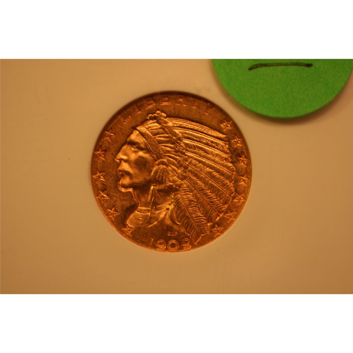 1909-D $5 Gold Indian Coin (NGC-MS62)