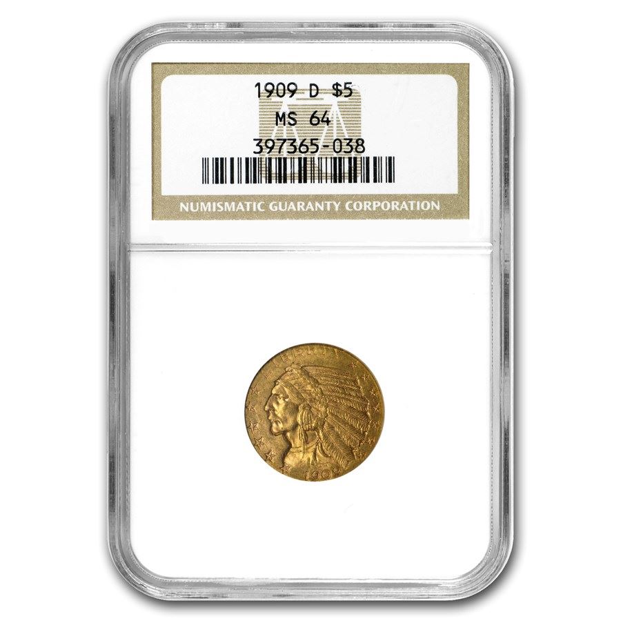 1909-D $5 Indian Gold Half Eagle MS-64 NGC
