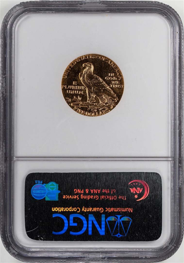 One 1909-D $5 Indian Half Eagle Gold Coin NGC MS62. NGC Certified.