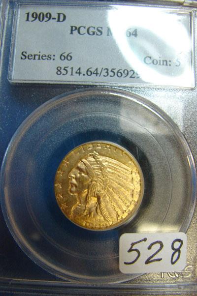 1909-D $5 Indian Head Gold Coin PCGS MS64