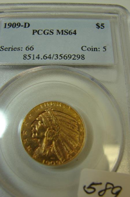 1909-D $5 Indian Head Gold Coin PCGS MS64