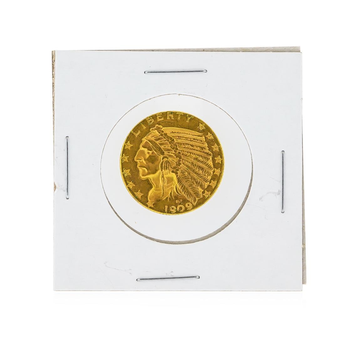 One 1909-D $5 Indian Head Half Eagle Gold Coin.