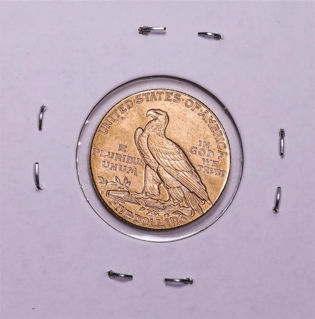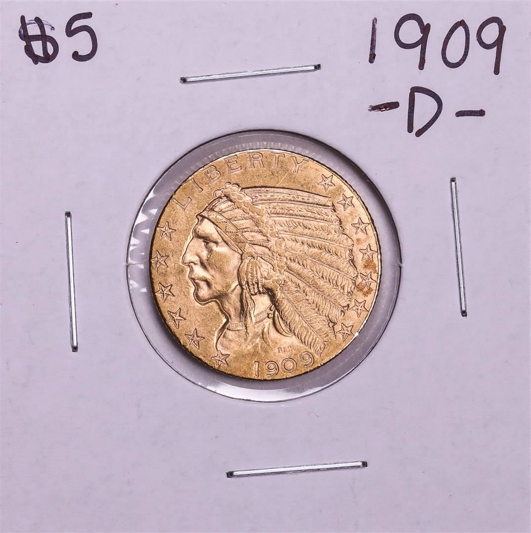 One 1909-D $5 Indian Head Half Eagle Gold Coin.