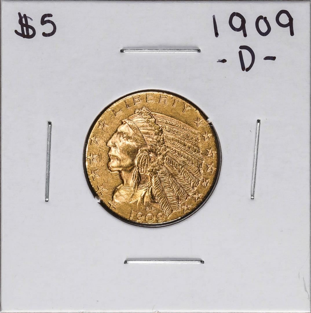 One 1909-D $5 Indian Head Half Eagle Gold Coin.