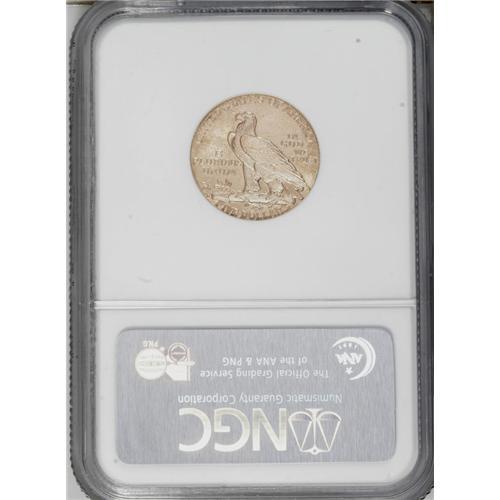 <B>1909-D<$5> MS62 NGC.</B></I> An attractive orange-gold piece with surfaces that pale near the devices. Solidly struck with soft luster and scattered ticks that preclude a higher grade.