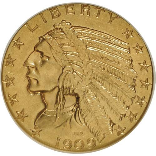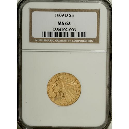 1909-D $5 MS62 NGC. NGC Census: (7185/7330). PCGS Popu