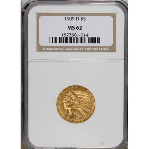 1909-D $5 MS62 NGC. This precisely struck gold type co