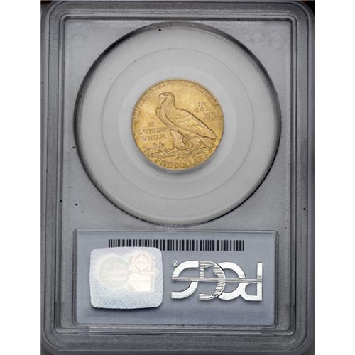 <B>1909-D<$5> MS62 PCGS.</B></I> A crisply struck and radiant apricot-gold type coin with a clean obverse and distributed minor reverse field marks. <BR><BR><B>Important notice:</B> Heritage usually auctions material at the rate of 200-250 lots per hour. On some occasions eBay Live bid software or the Internet may not be able to keep up with the pace of the auction. We recommend placing a realistic absentee bid now as insurance to avoid disappointment. Occasionally the auctioneer may eliminate or reject an eBay Live bid, and the auctioneer may also reopen a lot after the close of the eBay live bidding (usually because we missed an audience bid), and may reject your bid even if it shows you as the winning bidder. By bidding via eBay Live, you agree that Heritage may award the lot to another bidder at its sole discretion under the circumstances described above or any other reasonable circumstances. Since eBay bids are not shown to us until we open the lot on the floor, we treat those bids just like floor bids. In most cases the floor responds before the eBay bid is presented to us, due to Internet lag time, so for consistency we have made it a policy that floor bids are always considered first over tie eBay live bids. Also please note that all Heritage lots purchased through eBay Live carry a 20% Buyer's Premium. Please make sure you read the Terms and Conditions before you bid. This lot is being auctioned in conjunction with a live floor auction by Heritage Galleries & Auctioneers. All final auction and invoice information will be supplied by Heritage Galleries & Auctioneers, and all other information should be considered preliminary. Lot:2870 <BR><BR><B>Winning Notification and Billing:</B> After the FINAL session in this auction is complete, Heritage will send e-mail and snail mail invoices. This process normally takes several days. All final auction and invoice information will be supplied by Heritage Galleries & Auctioneers, and all other information should be considered preliminary. <BR><BR>This auction will be conducted on a live auction floor and over the Internet through eBay Live. If you choose to place an absentee bid, please take a moment to <font color='#0000ff'><u><a href='http://pages.ebay.com/liveauctions/help/before/laabsentee.html'>learn how eBay Live absentee bidding works</a></u></font><font color='#000000'>