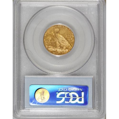 1909-D $5 MS62 PCGS. Luster glints from this lightly a