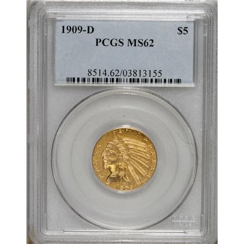 1909-D $5 MS62 PCGS. PCGS Population (7153/9572).