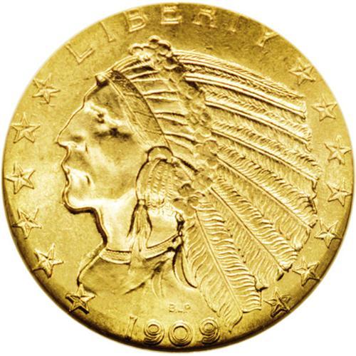 "1909-D $5 MS63 NGC. A frosty, highly lu"