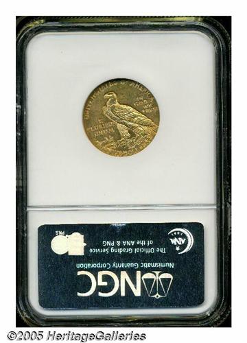 <B>1909-D<$5> MS63 NGC.</B></I> Well struck and lustrous, with a pleasing mixture of straw-gold, olive, and pink toning over the satiny, matte-like, carefully preserved surfaces.