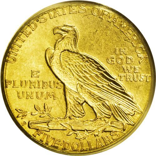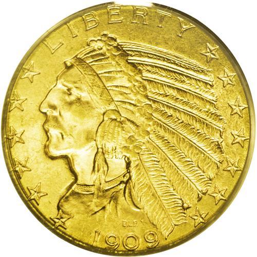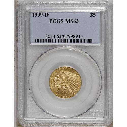 1909-D $5 MS63 PCGS. An unusually lustrous wheat-gold