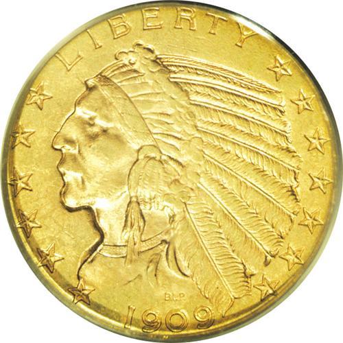1909-D $5 MS63 PCGS. This well struck Indian half eagl
