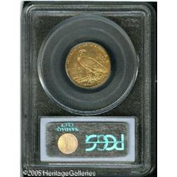 <B>1909-D $5 MS63 PCGS.</B></I> Well struck with attractive red-orange and pea-green coloration, and minimal marks for an MS63. Lot:8680