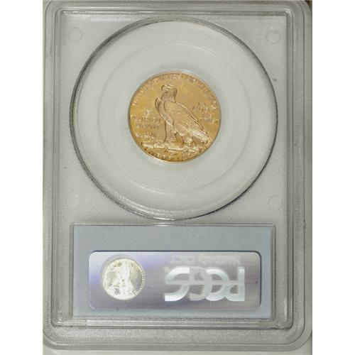 <B>1909-D $5 MS63 PCGS.</B></I> Well struck with satin luster and appealing khaki-gold coloration. A few tiny marks on the upper reverse field limit the grade.<BR><BR><b>Shipping:</b> Coins & Currency (<a target="_blank" href="http://www.heritageauctions.com/common/shipping.php">view shipping information</a>)