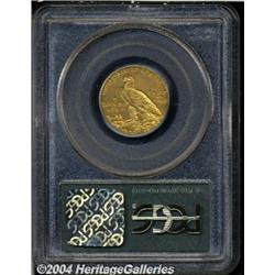 <B>1909-D<$5> MS63 PCGS.</B></I> With sharply brought up devices and overall smooth looking, orange-gold surfaces, this coin would do wonders for a high quality Mint State type set. Housed in an older, green insert PCGS slab.<BR><I>From The Greenwich Collection, Part One.</B></I> <BR><BR><B>Important notice:</B> Heritage usually auctions material at the rate of 200-250 lots per hour. On some occasions eBay Live bid software or the Internet may not be able to keep up with the pace of the auction. We recommend placing a realistic absentee bid now as insurance to avoid disappointment. Occasionally the auctioneer may eliminate or reject an eBay Live bid, and the auctioneer may also reopen a lot after the close of the eBay live bidding (usually because we missed an audience bid), and may reject your bid even if it shows you as the winning bidder. By bidding via eBay Live, you agree that Heritage may award the lot to another bidder at its sole discretion under the circumstances described above or any other reasonable circumstances. Since eBay bids are not shown to us until we open the lot on the floor, we treat those bids just like floor bids. In most cases the floor responds before the eBay bid is presented to us, due to Internet lag time, so for consistency we have made it a policy that floor bids are always considered first over tie eBay live bids. Also please note that all Heritage lots purchased through eBay Live carry a 20% Buyer's Premium. Please make sure you read the Terms and Conditions before you bid.