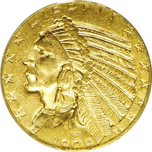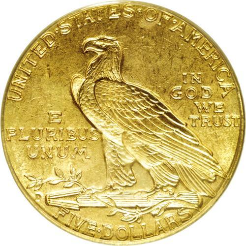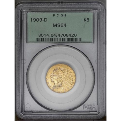 <B>1909-D $5 MS64 ANACS.</B></I> The surfaces are a lovely red-gold, with hints of hazel near the peripheries, and essentially pristine on this issue, one that is surprisingly scarce in the higher Mint State grades considering its ubiquitousness in lower grades. This is a robustly struck and essentially problem-free example.