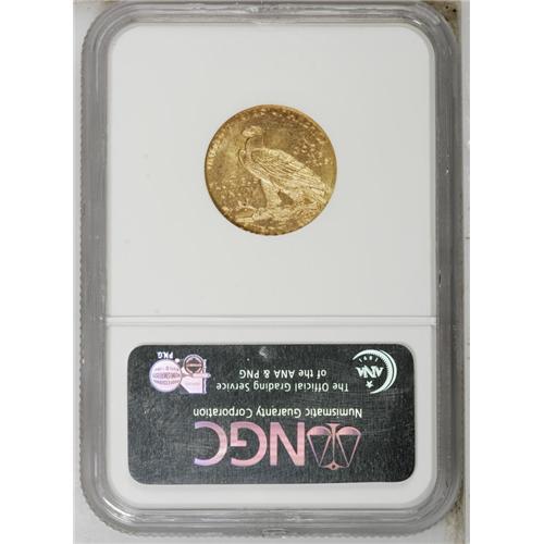 <B>1909-D<$5> MS64 NGC.</B></I> Boldly struck and lustrous, with attractive khaki and salmon coloration. The matte-like surfaces are carefully preserved and blemish-free on the obverse, while the reverse only exhibits a few wispy marks. An appealing near-Gem example of this common Indian Head half eagle issue.