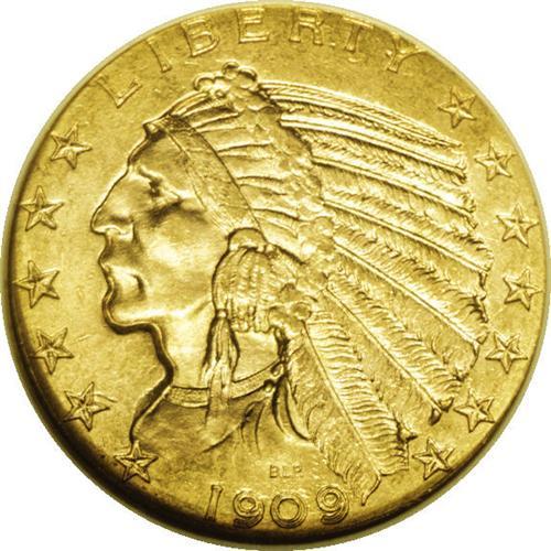 1909-D $5 MS64 NGC. Choice and bright, with yellow-gol