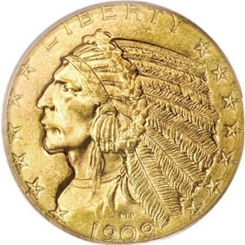 <B>1909-D $5 MS64 PCGS.</B></I> Jeff Garrett and Ron Guth (2006) call the 1909-D half eagle "... the most common date of the series and available in most Mint State grades, including Gem condition." Indeed, PCGS and NGC have certified several thousand pieces through MS64, while roughly 140 Gems have been seen, and fewer than 10 Premium Gems. This MS64 example displays rich orange-gold color and vibrant luster, and exquisite strike definition is apparent on the design elements. A few trivial marks on each side prevent a higher grade. Excellent technical quality and aesthetic appeal for the designated grade.<BR><I>From The Jim O'Neal Collection of Indian Half Eagles.</B></I><BR><BR><B>Coin Engraver:</B> Bela Lyon Pratt<BR><BR><b>Shipping:</b> Coins & Currency (<a target="_blank" href="http://www.heritageauctions.com/common/shipping.php">view shipping information</a>)