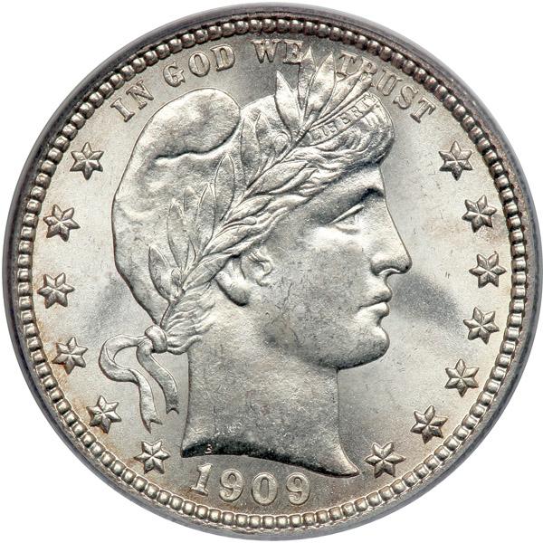 1909-D. PCGS graded MS-65 PQ. A nice white coin. Superior surfaces, color, strike, and overall eye-appeal, consequently our Premium Quality designation Pop 36; 22 finer (PCGS # 5654) .
