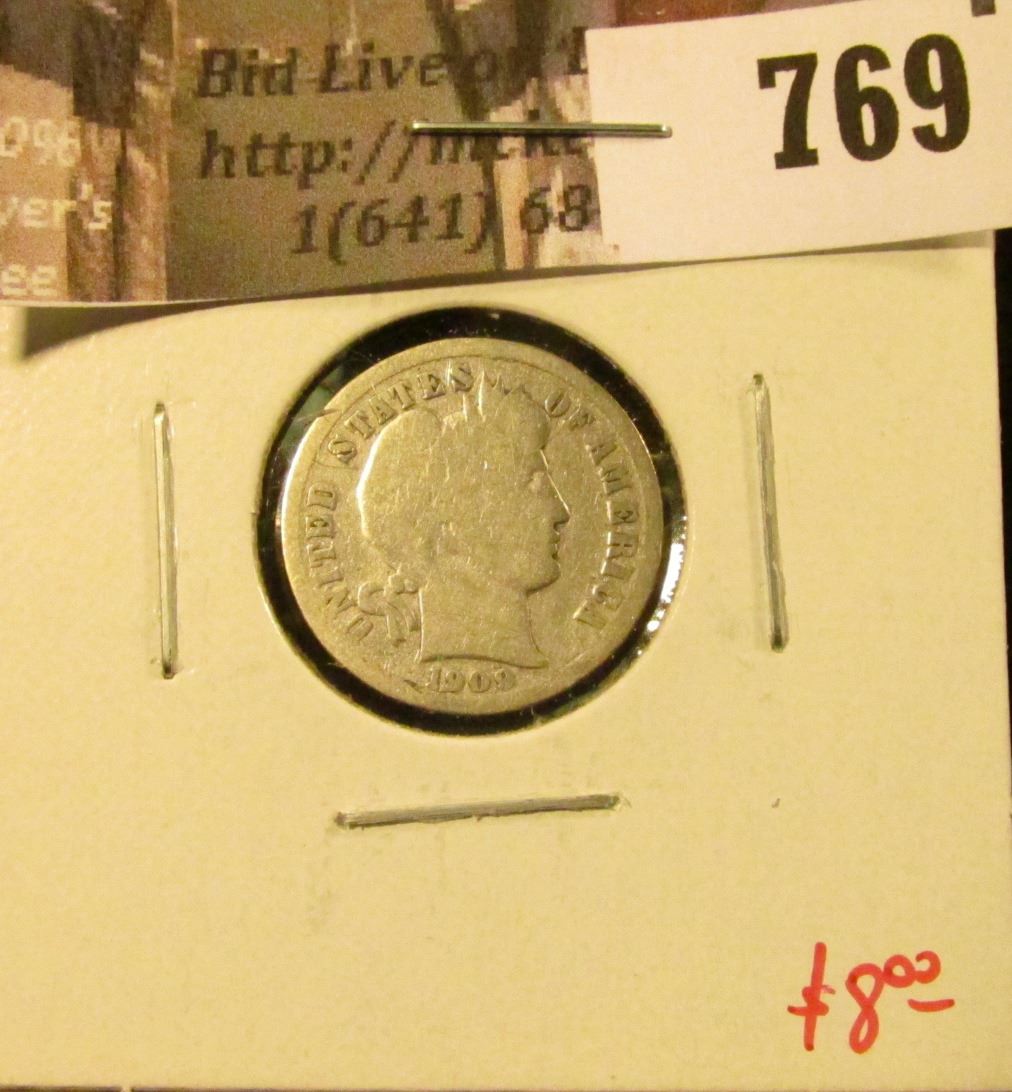 1909-D Barber Dime, better date, G, value $8