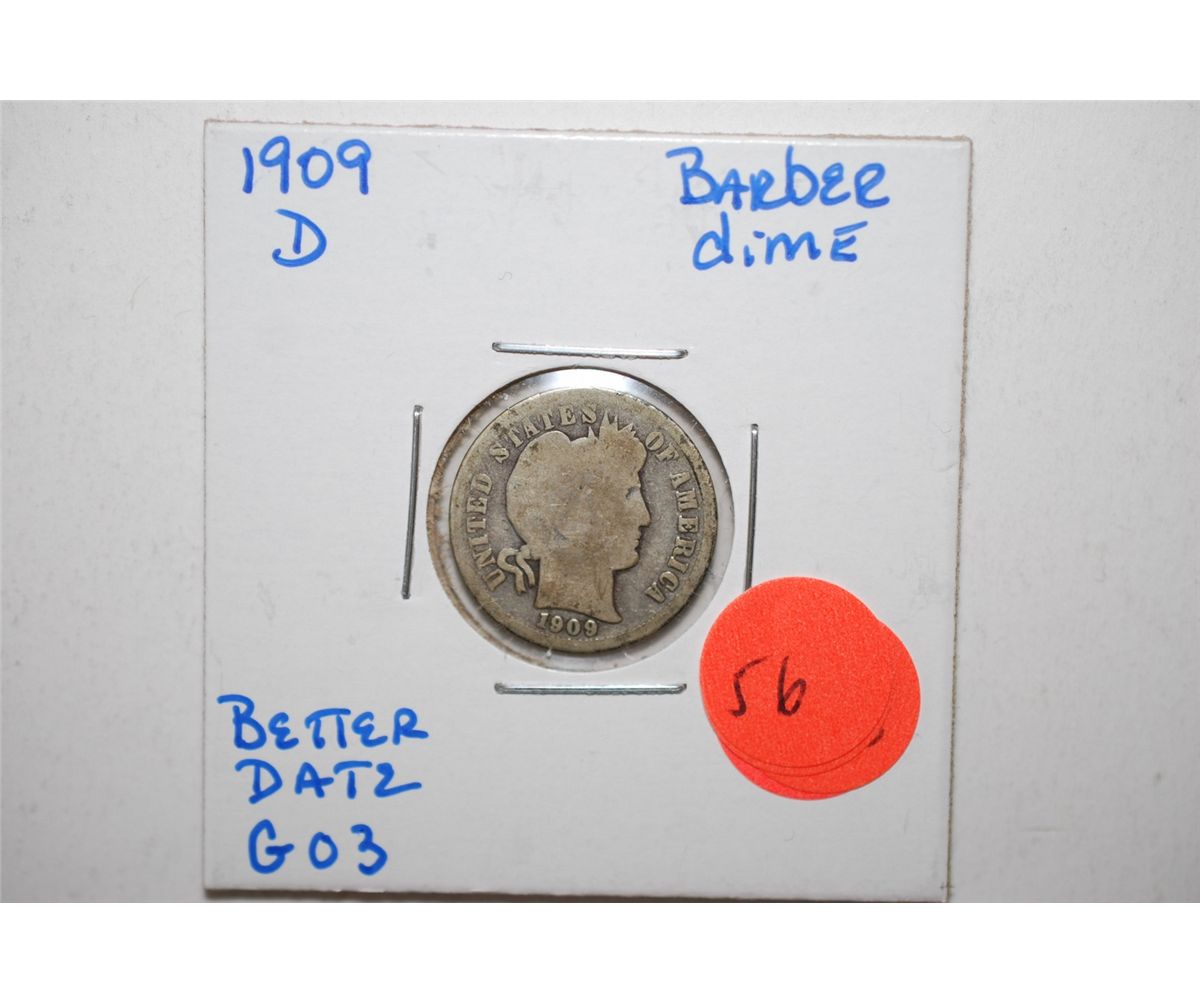 1909-D Barber One Dime; Better Date G03; EST. $8-15