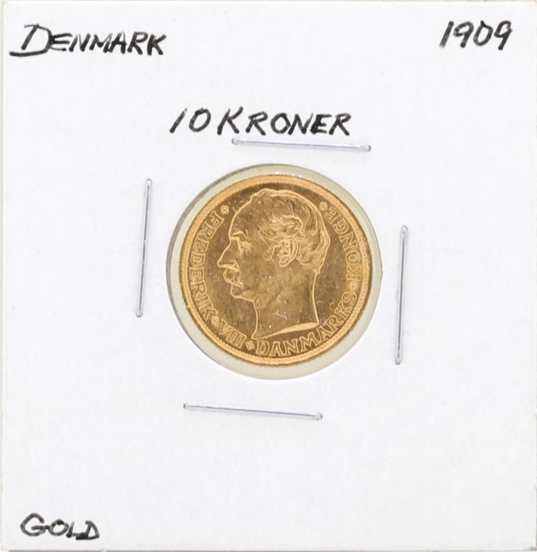 One 1909 Denmark 10 Kroner Gold Coin.